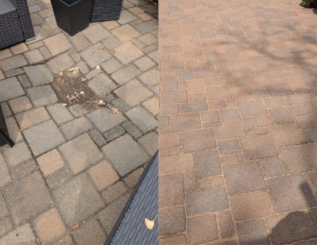 - Polymeric Sand Refresh (Upgraded): $2.50 per sq. ft. Includes: Full powerwash and joint clean-out, followed by premium Polymeric sand for superior weed and washout resistance.