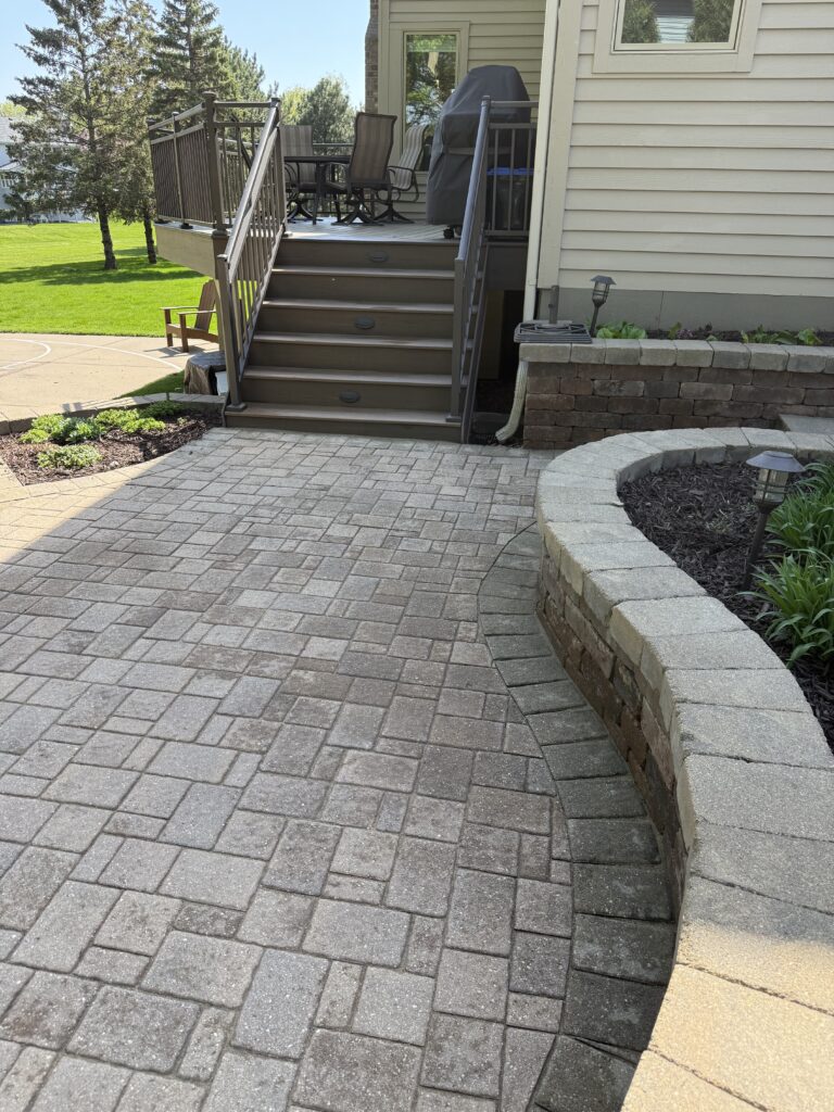 Sand base patios commonly settle or shift over time, especially in Minnesota’s freeze–thaw climate. Sand base repair corrects minor movement by re-leveling affected areas and restoring proper support—without the need for a full base rebuild.
